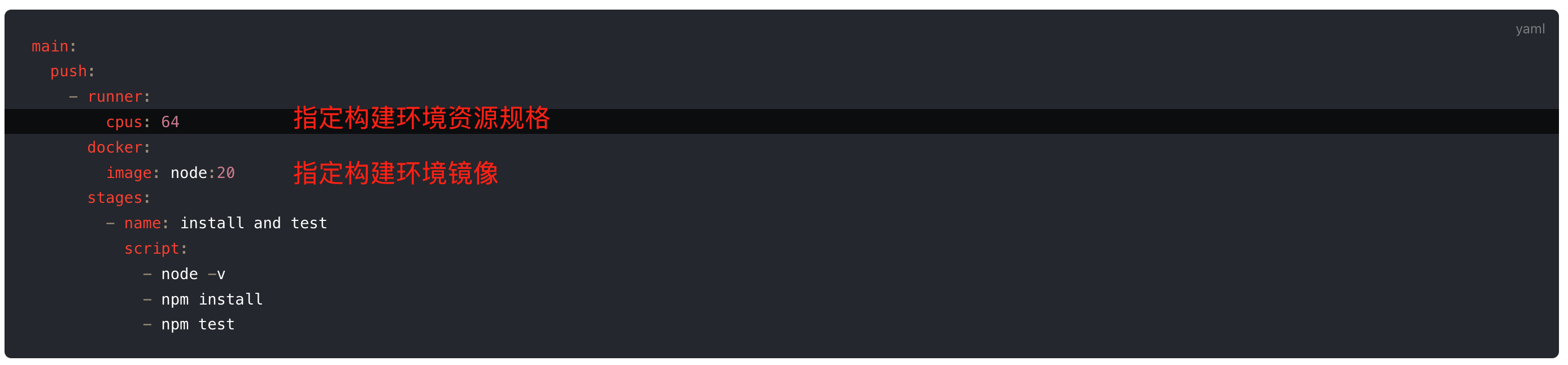 构建环境由开发自管理,运维专注于管理集群资源。开发团队可以自行定制 Docker 镜像,并声明式指定构建环境的 Docker 镜像,以及指定构建环境资源规格。