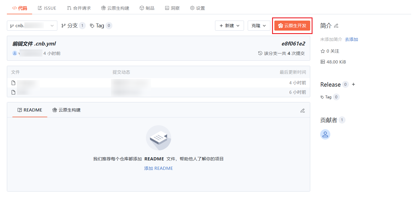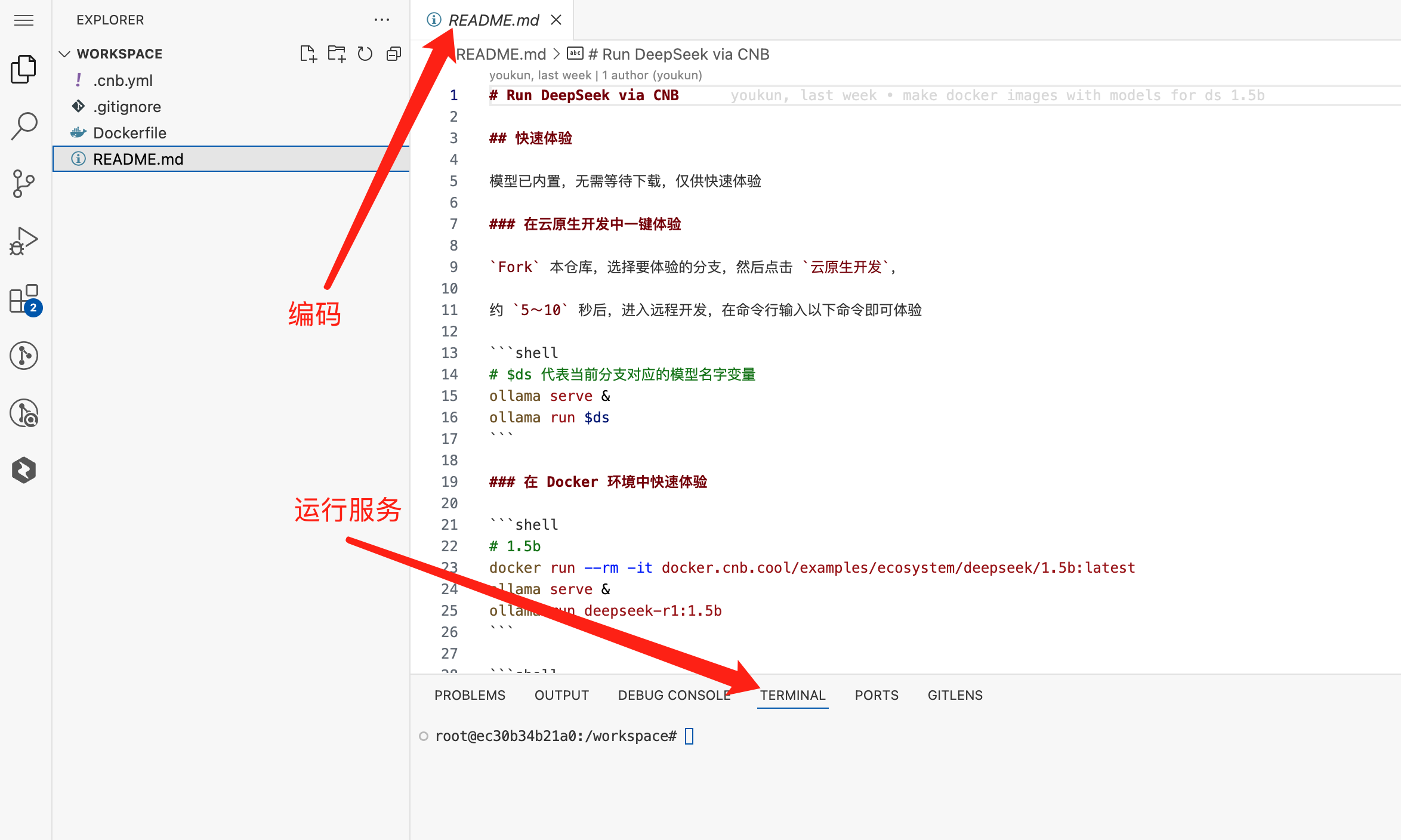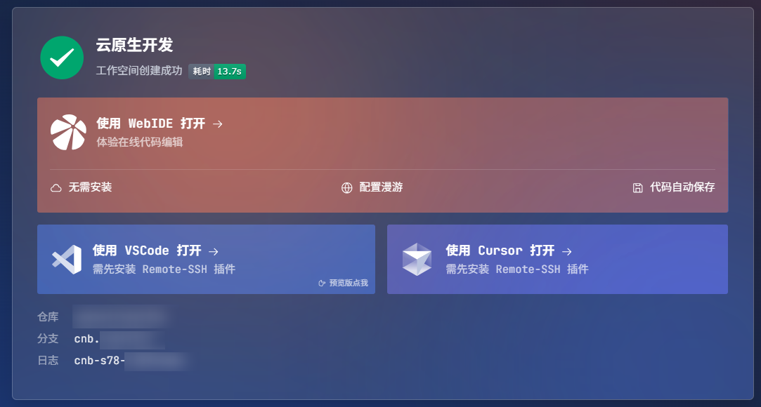 ,即可为当前用户 + 该仓库分支,分配关联的云端容器环境。