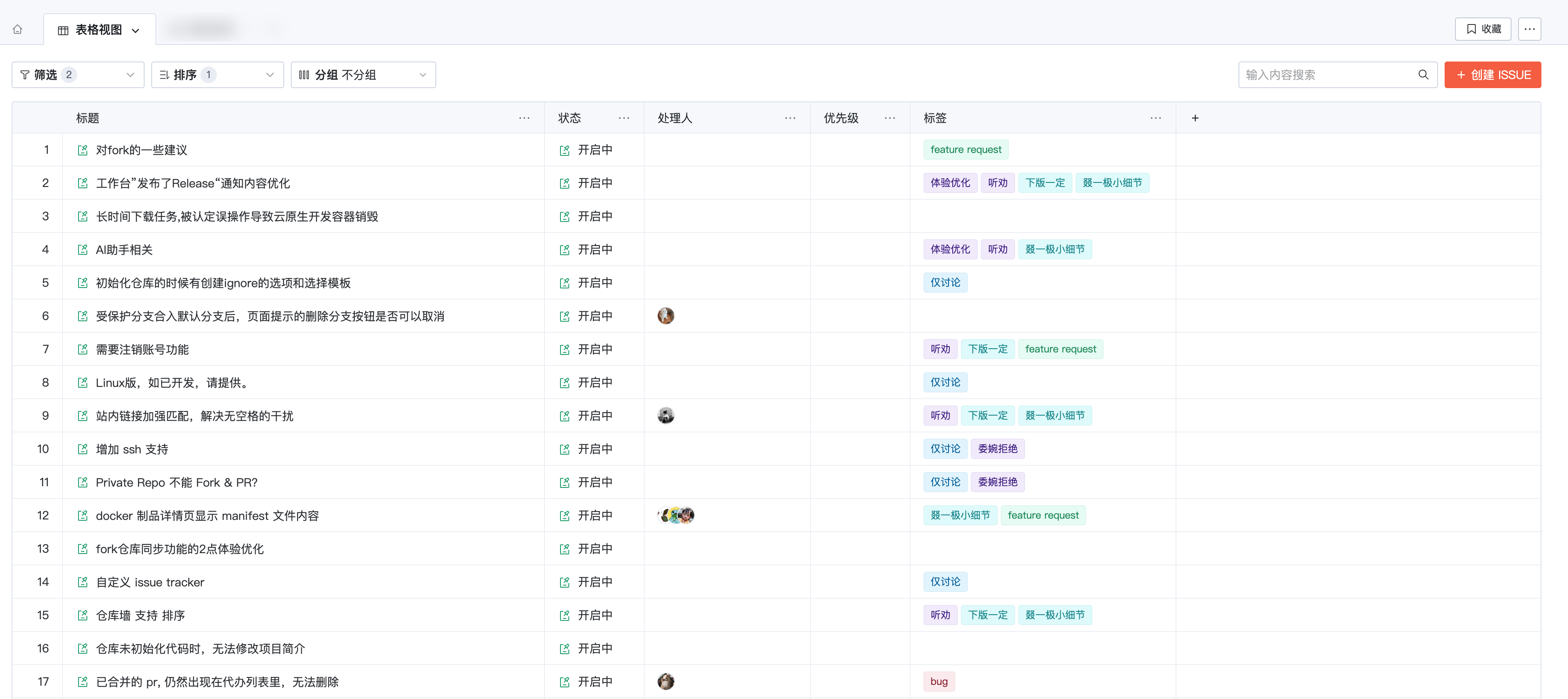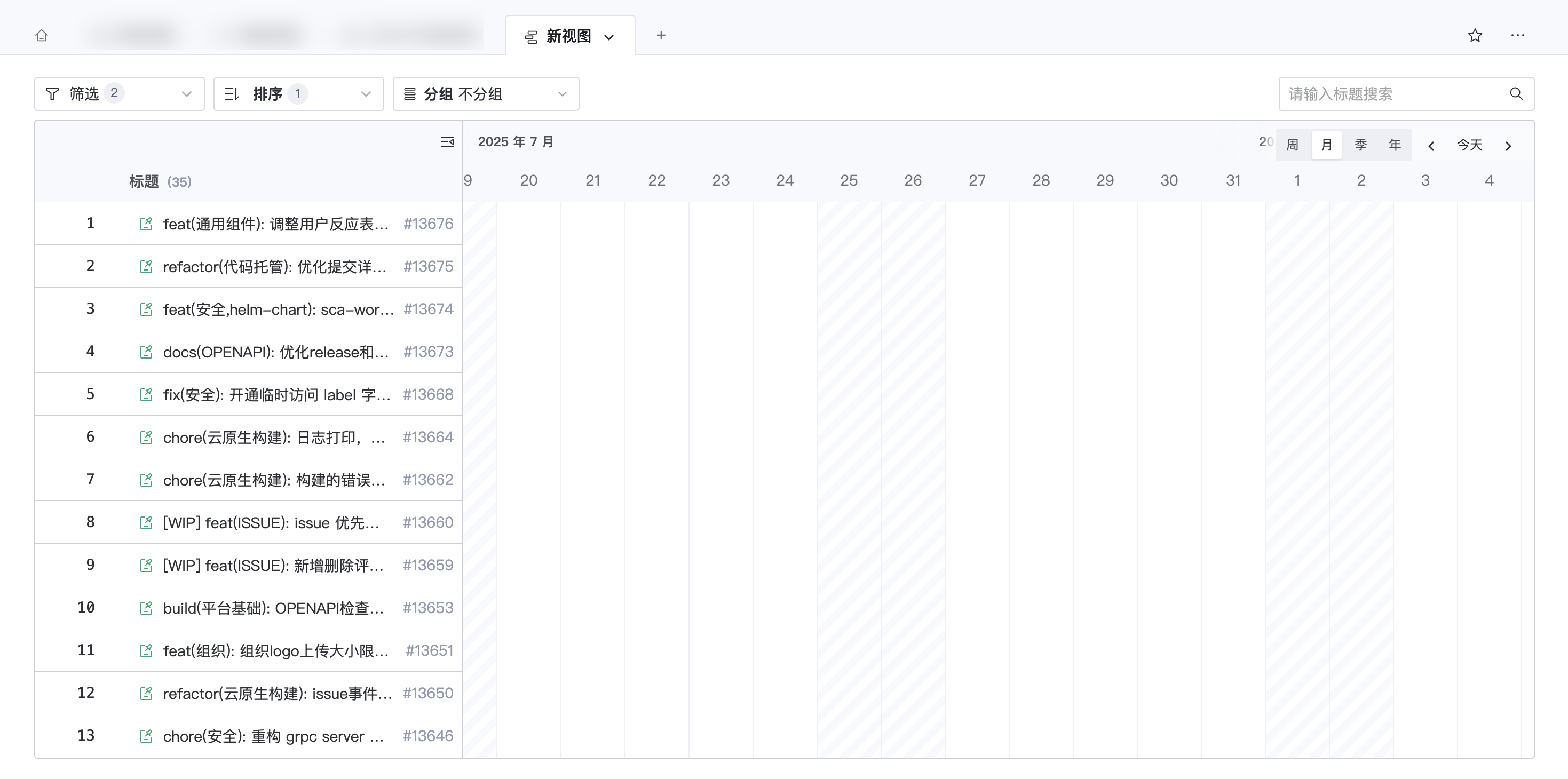 自由配置/切换表格视图、看板视图及甘特视图,以不同视角管理 Issue/PR。