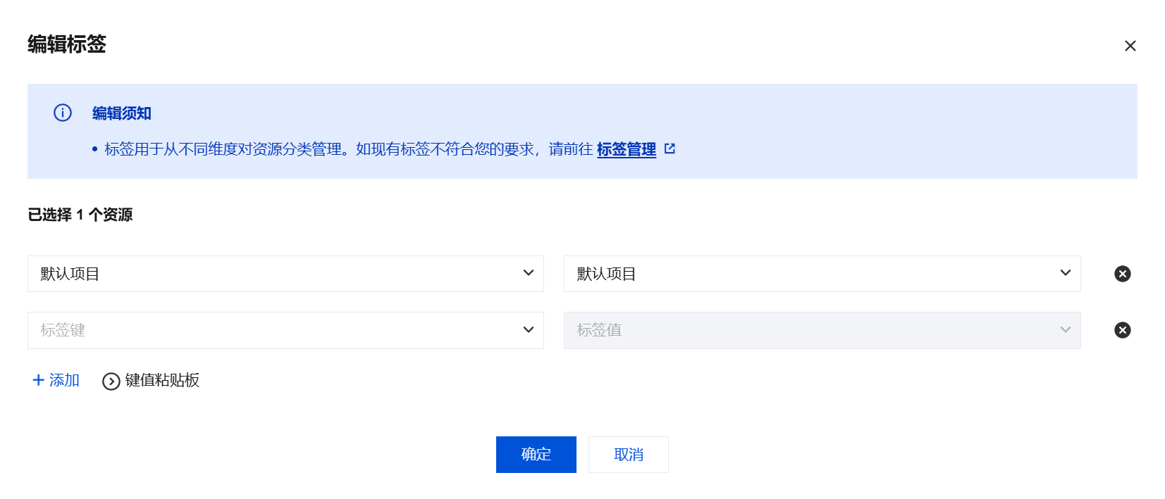 2. 在编辑标签页面,您可按需绑定或删除标签。