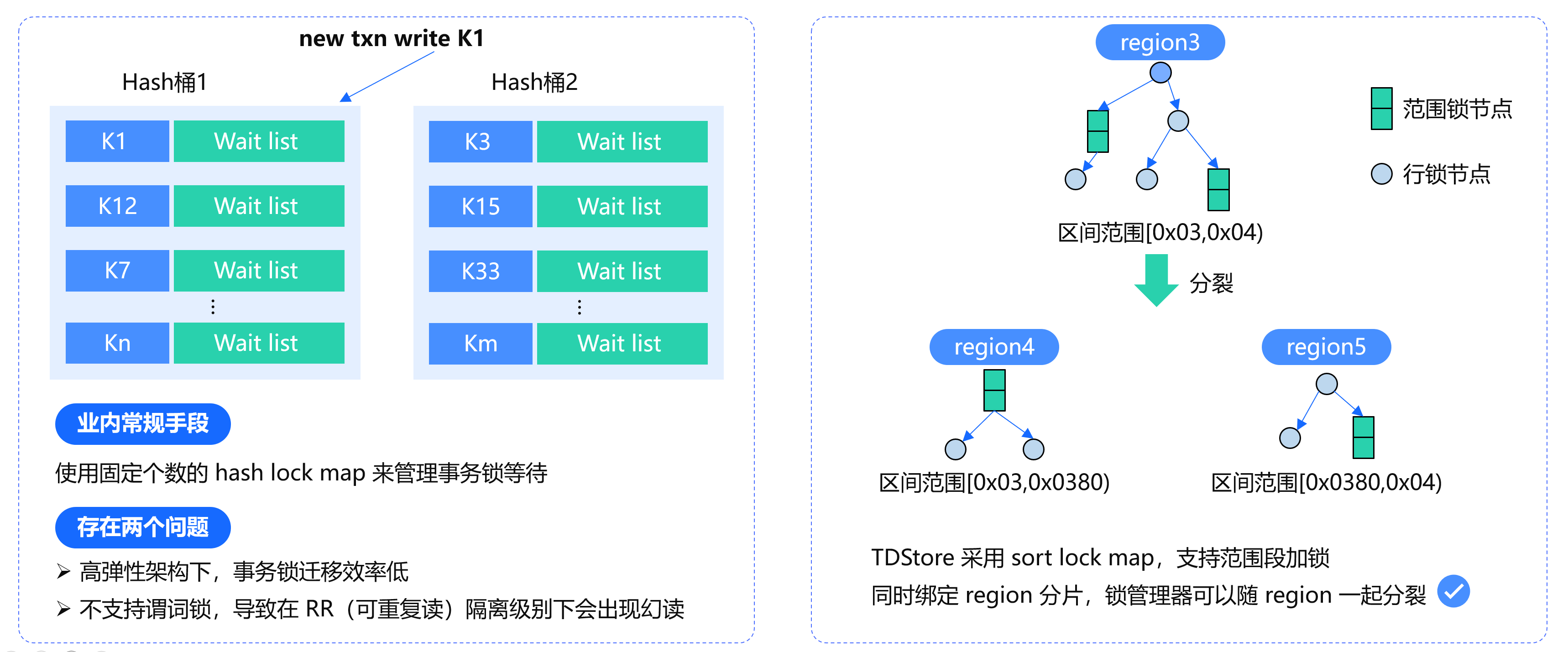 同时绑定 region 分片,锁管理器可以随 region 一起分裂。
