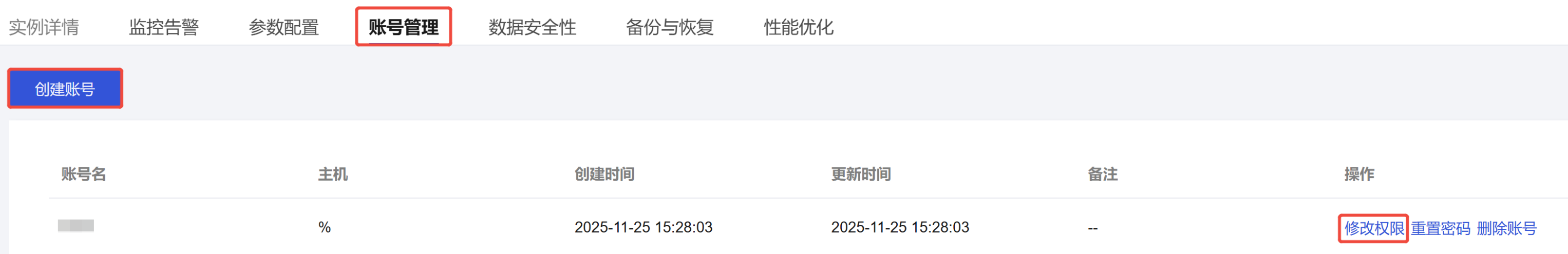 CREATE TABLE ... AS SELECT ...语法,如需恢复,需联系技术支持关闭同步功能并重启实例。REPLICATION CLIENT、REPLICATION SLAVE、PROCESS 和全部对象的 SELECT权限。REPLICATION CLIENT、REPLICATION SLAVE、PROCESS 和全部对象的 SELECT权限。