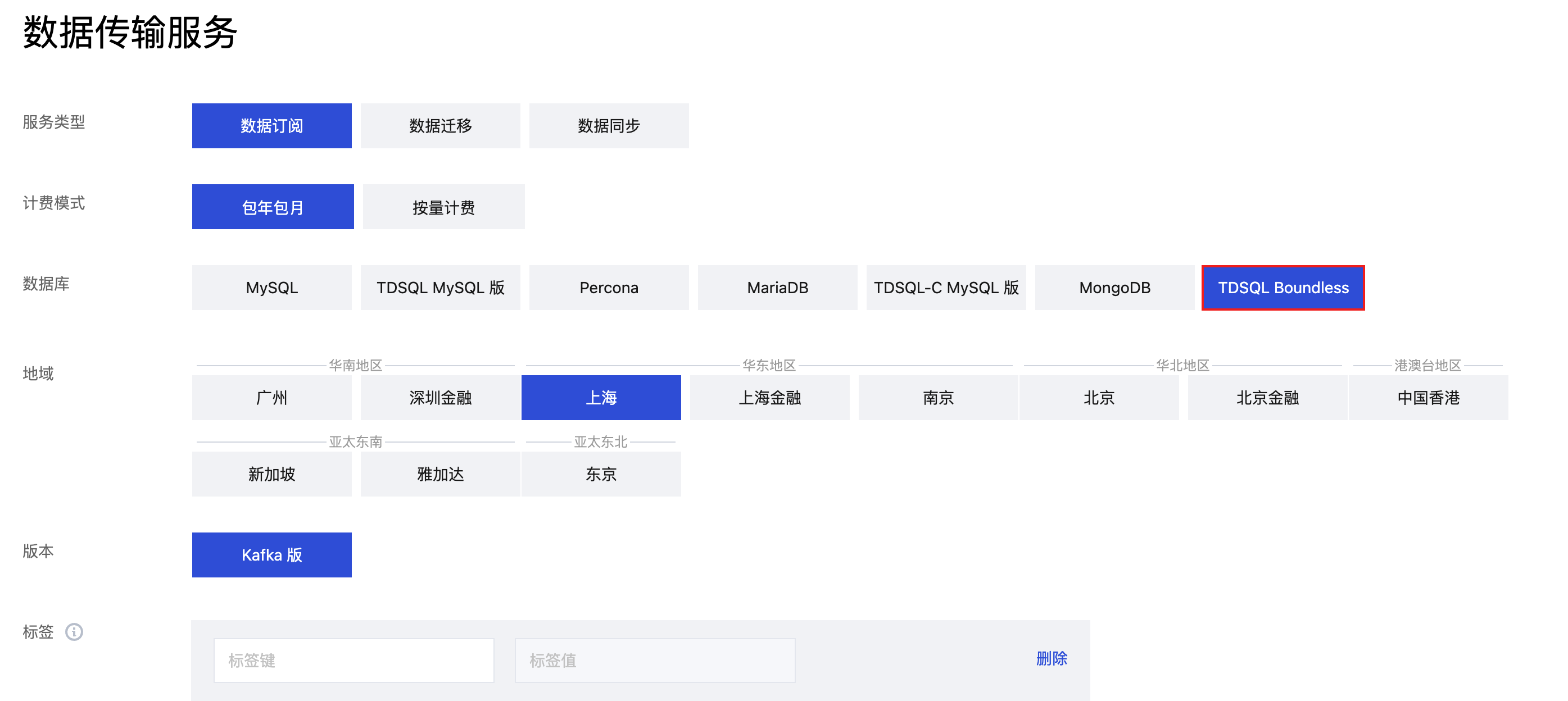 数据库 | 选择 TDSQL Boundless。 |