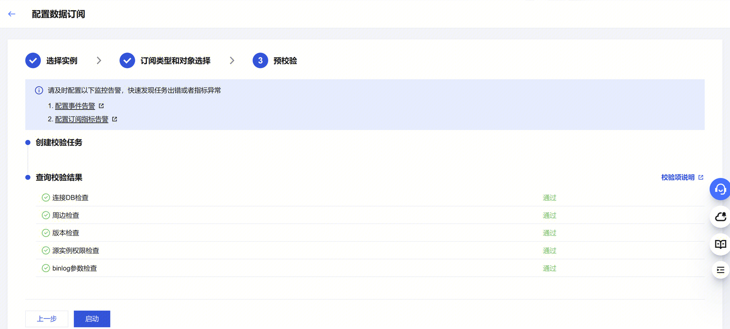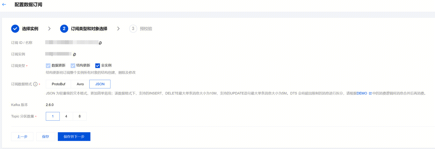 订阅类型 | 数据更新:订阅源库全部对象的数据更新,包括数据 INSERT、UPDATE、DELETE 操作。结构更新:订阅源库全部对象的结构创建、修改和删除。 全实例:订阅源库全部对象的数据更新和结构更新。 |