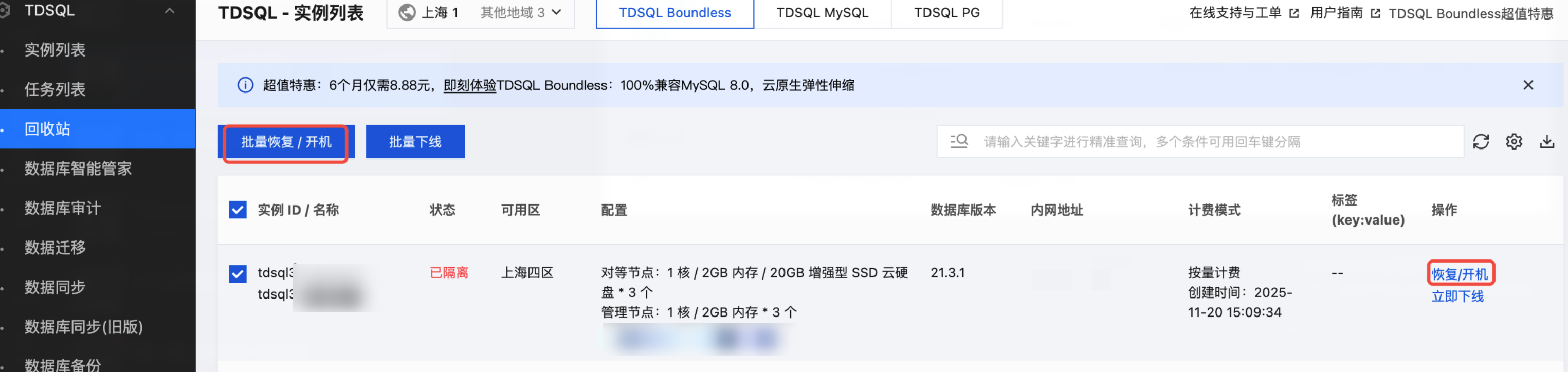 3. 操作完成后,实例会进入回收站,实例状态为“已隔离”。