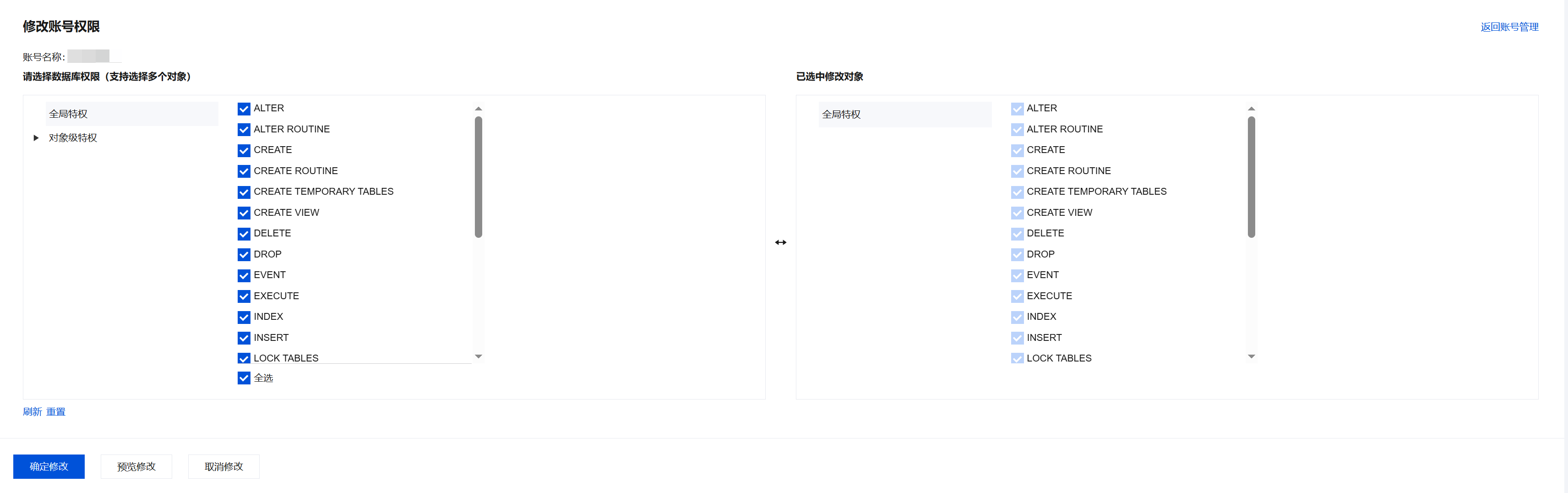 ALTER ROUTINE | 更改存储过程和函数等例程的权限。 |