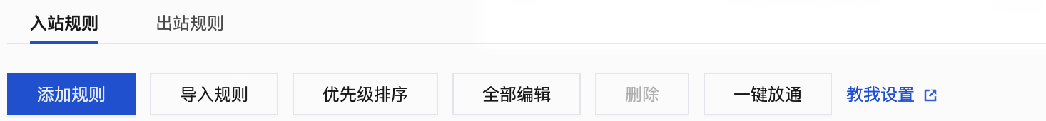 1. 在 安全组 页面,在需要设置规则的安全组行中,单击操作列的修改规则。 2. 在安全组规则页面,选择入站规则 > 添加规则。