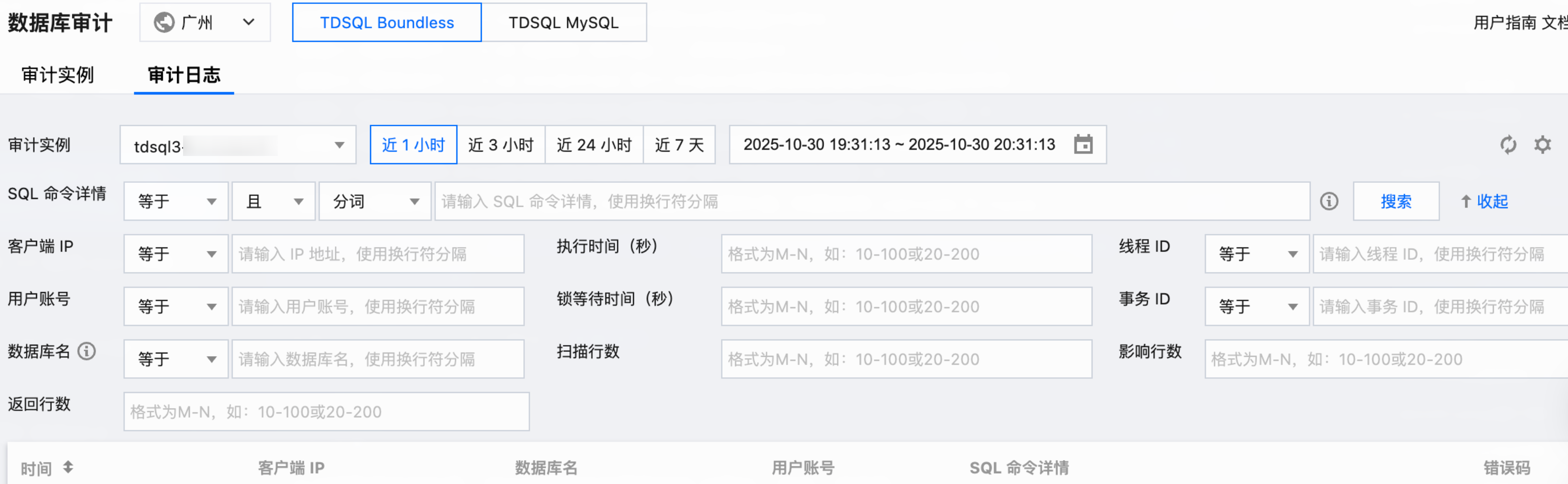 开通审计后,可在审计日志页查看对应的 SQL 审计日志。