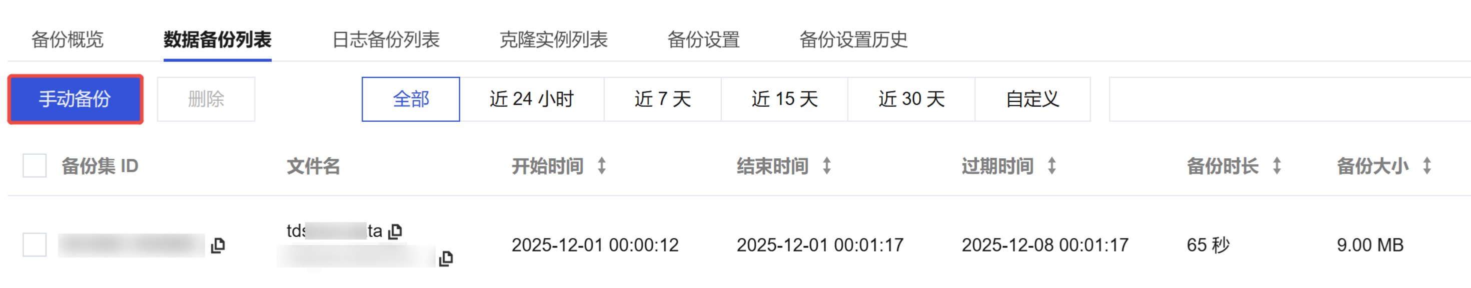 对于手动备份的备份集,系统将不会自动进行删除。用户需自行执行删除操作以移除不再需要的手动备份集。