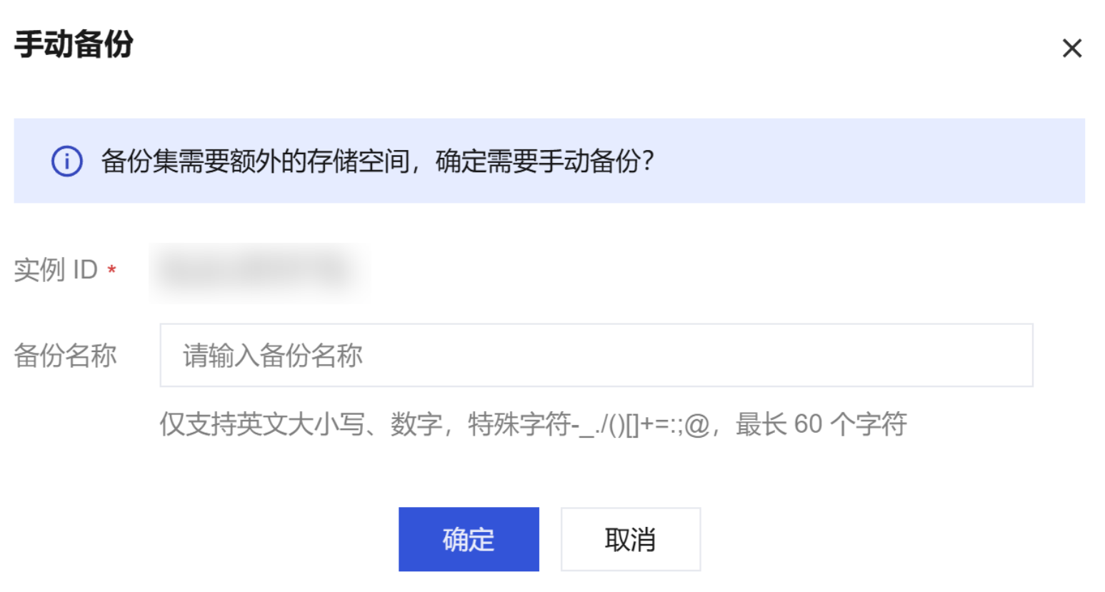 在弹出框中,根据业务需要设置备份名称,单击