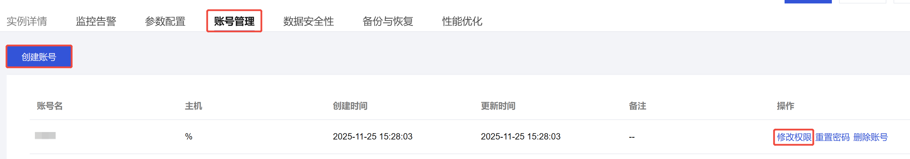 2.2 进入账号管理页面,单击创建账号,创建用于数据同步的用户。