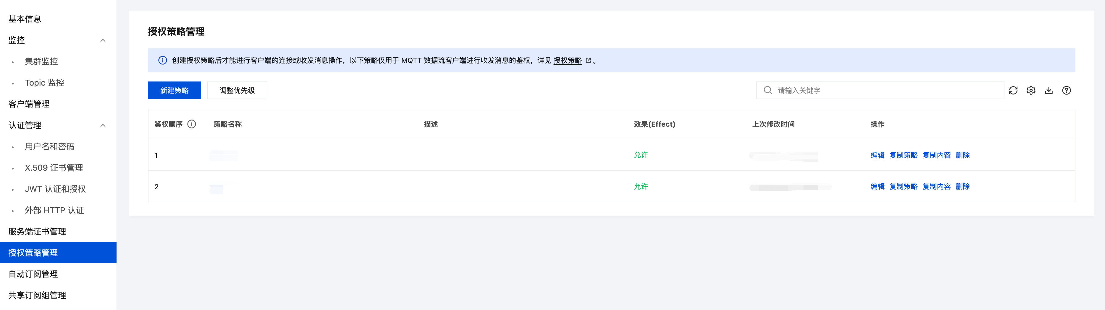 MQTT 提供多种认证方式保证客户端和服务端的通信安全,用户名(username)和密码(password)是最基本的认证方式,本文以该方式为例介绍快速配置认证和授权的操作步骤。