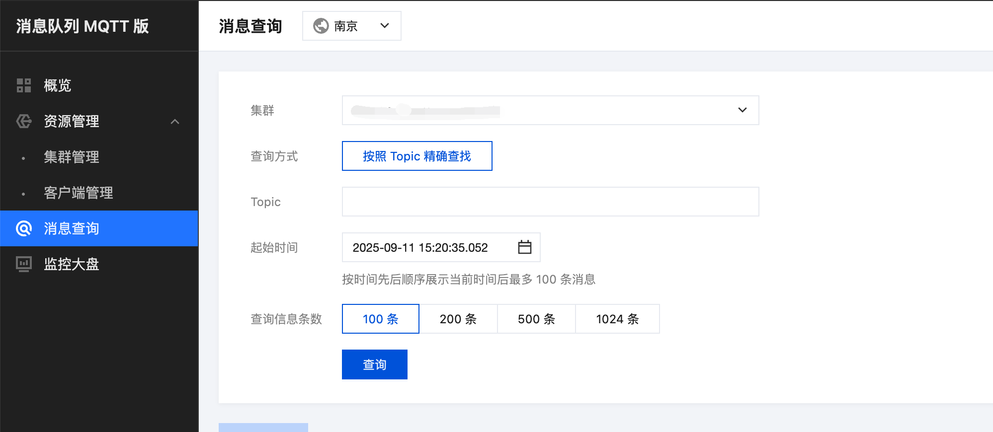 当前集群:选择需要查询的 Topic 所在的集群。