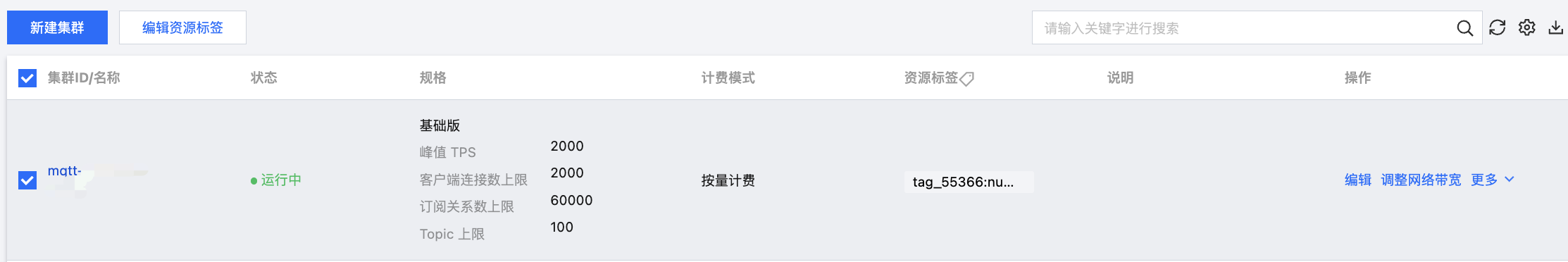 2. 勾选目标集群,单击左上角的编辑资源标签,为集群绑定好资源标签。