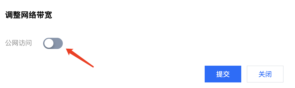2. 在弹窗中关闭公网访问按钮,提交后即可关闭公网。