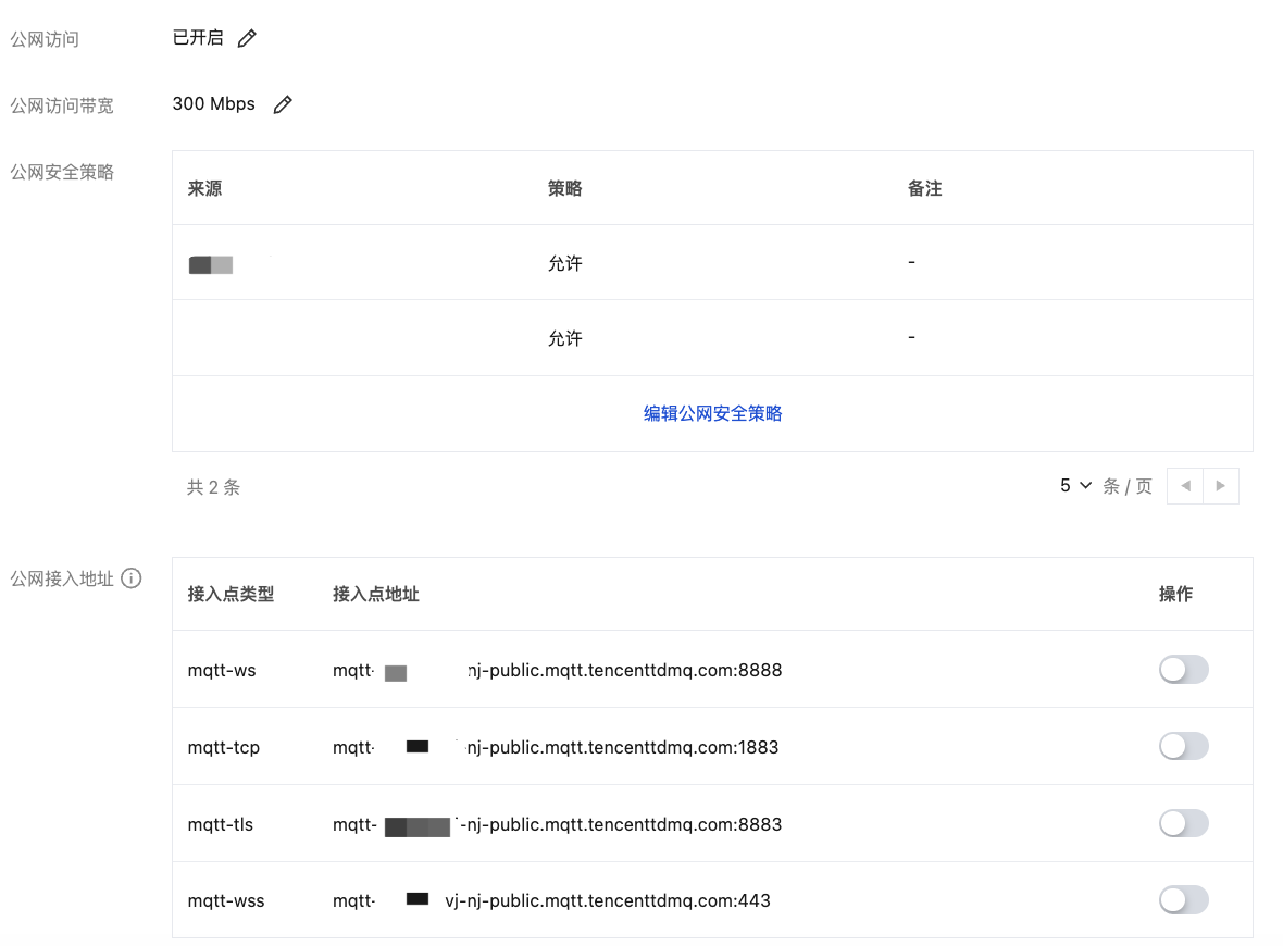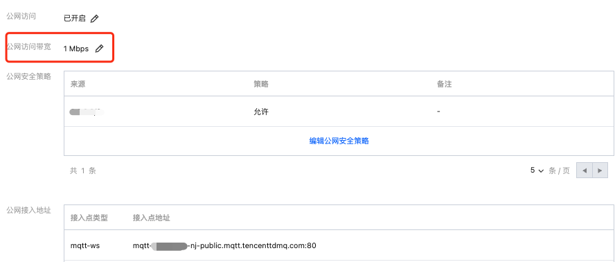 本文档为您介绍在 TDMQ MQTT 版控制台开通公网路由、调整公网带宽配置和删除公网带宽的操作步骤。