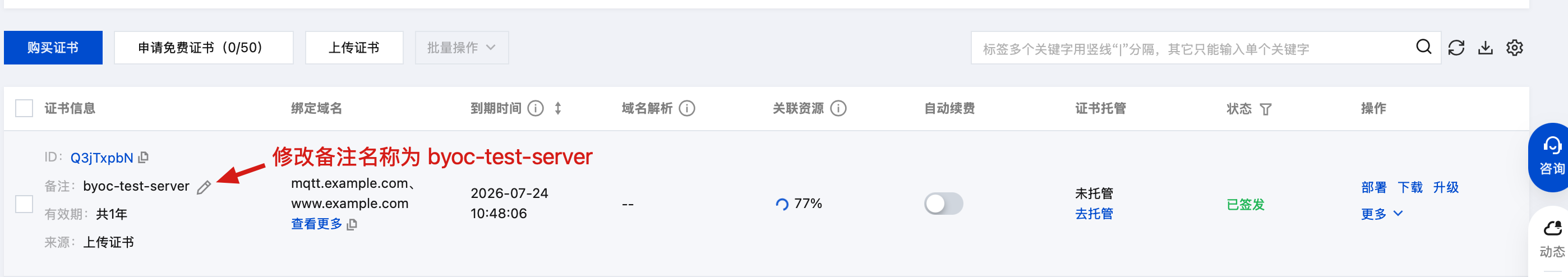 DNS.1 = mqtt.example.comDNS.2 = www.example.comDNS.3 = api.example.comDNS.4 = *.example.com