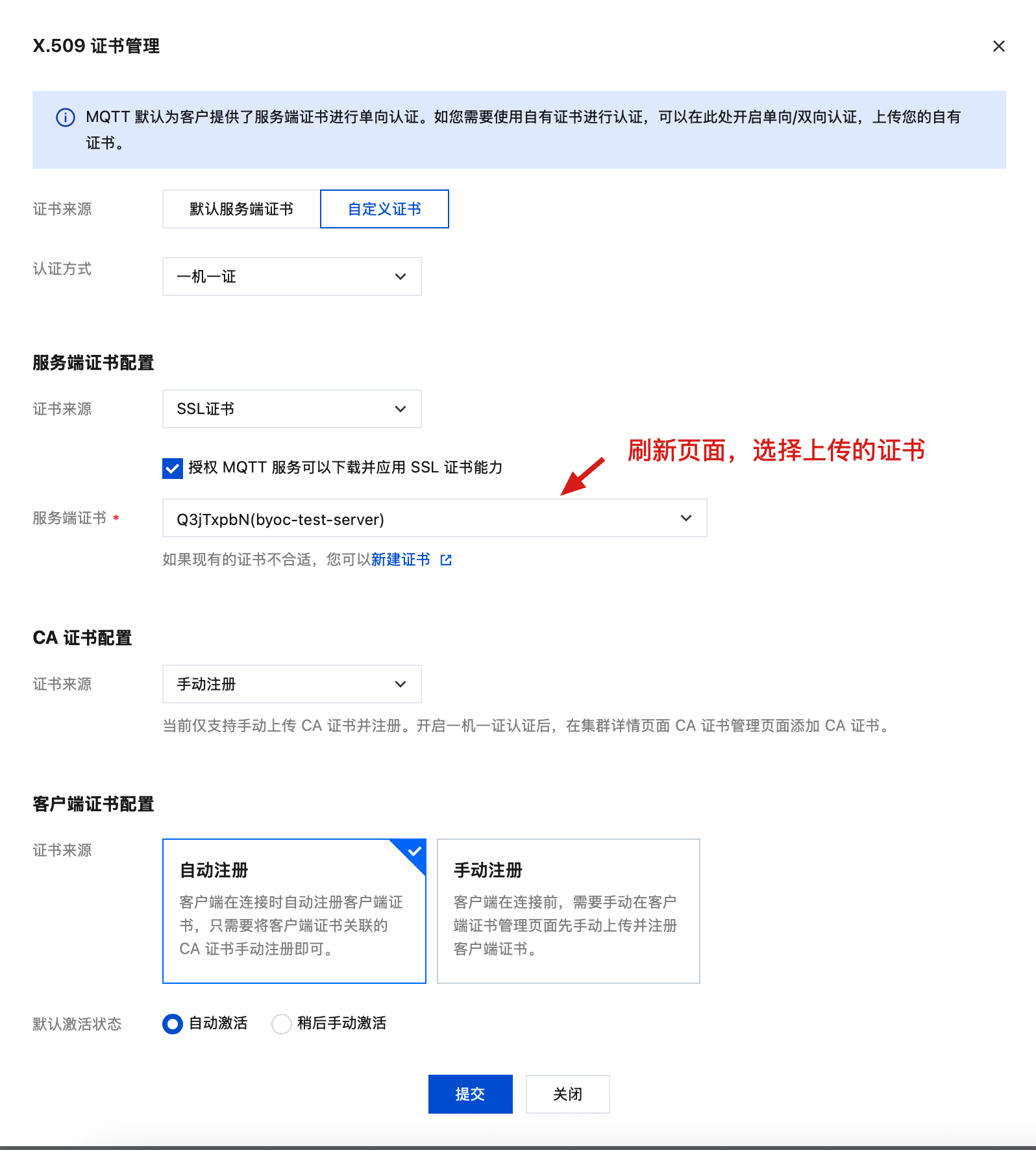Connecting to 109.244.152.235CONNECTED(00000005)depth=1 C=CN, ST=ZheJiang, L=HangZhou, O=TencentCloud, CN=MQTT-CAverify return:1depth=0 C=CN, ST=ZheJiang, L=HangZhou, O=Example, CN=mqtt.example.comverify return:1---Certificate chain0 s:C=CN, ST=ZheJiang, L=HangZhou, O=Example, CN=mqtt.example.comi:C=CN, ST=ZheJiang, L=HangZhou, O=TencentCloud, CN=MQTT-CAa:PKEY: RSA, 4096 (bit); sigalg: sha256WithRSAEncryptionv:NotBefore: Jul 24 02:48:06 2025 GMT; NotAfter: Jul 24 02:48:06 2026 GMT1 s:C=CN, ST=ZheJiang, L=HangZhou, O=TencentCloud, CN=MQTT-CAi:C=CN, ST=ZheJiang, L=HangZhou, O=TencentCloud, CN=MQTT-CAa:PKEY: RSA, 4096 (bit); sigalg: sha256WithRSAEncryptionv:NotBefore: Jul 24 02:47:18 2025 GMT; NotAfter: Jul 22 02:47:18 2035 GMT---Server certificate...Acceptable client certificate CA names...---SSL handshake has read 3950 bytes and written 5058 bytesVerification: OKVerified peername: mqtt.example.com---New, TLSv1.3, Cipher is TLS_AES_256_GCM_SHA384Protocol: TLSv1.3Server public key is 4096 bitThis TLS version forbids renegotiation.Compression: NONEExpansion: NONENo ALPN negotiatedEarly data was not sentVerify return code: 0 (ok)