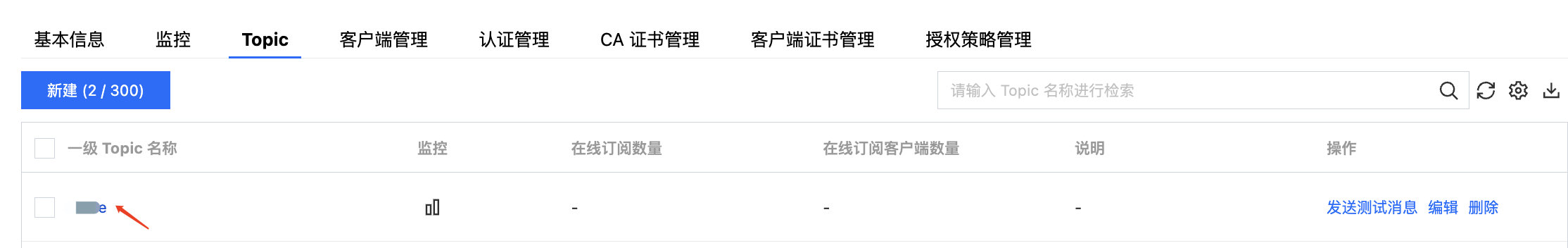topic | MQTT 第一级 Topic,在控制台集群详情页 Topic 管理页面复制。 ![]() |