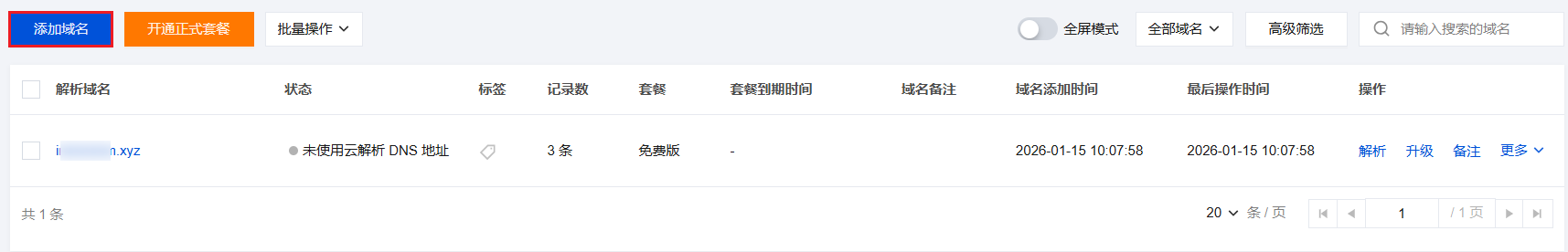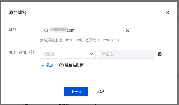 若您的域名在腾讯云注册,解析域名默认添加到解析域名列表,无需操作此步骤。