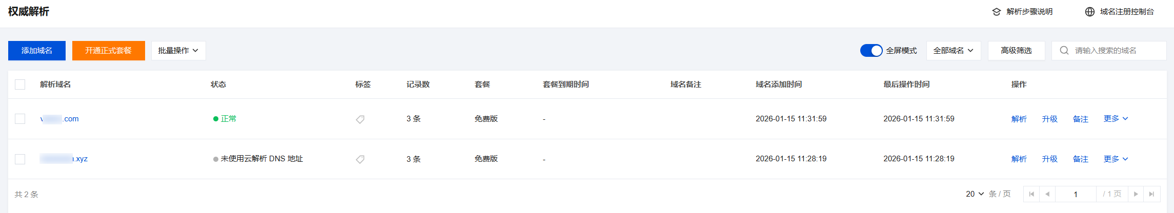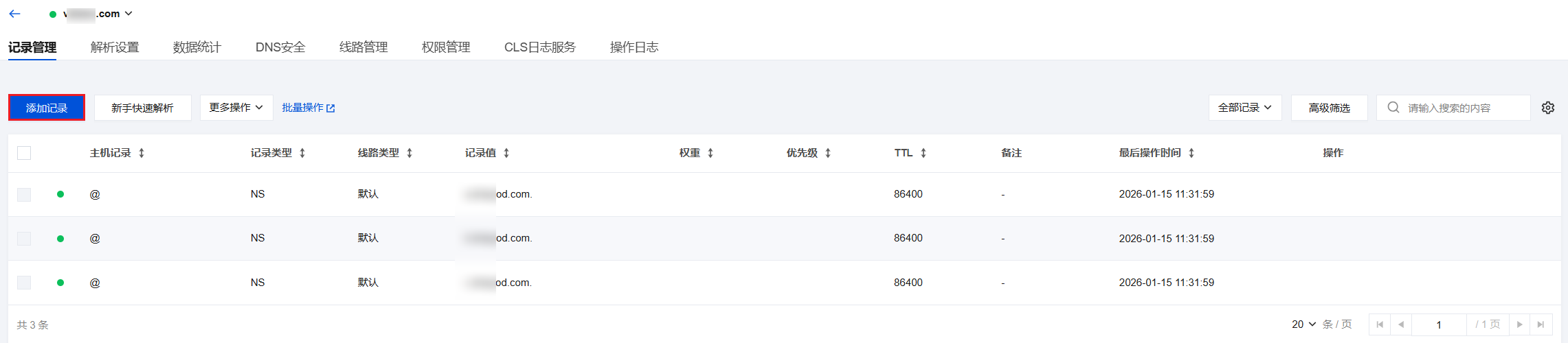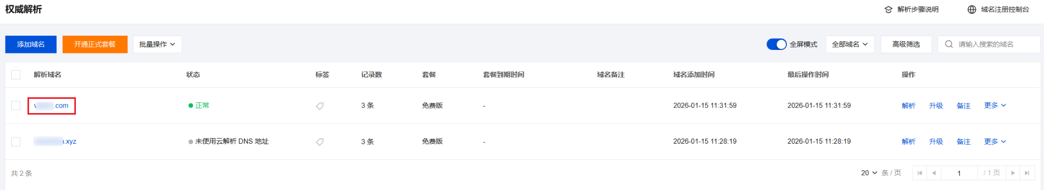 3. 若域名成功出现在权威解析页面中,则表示添加成功。