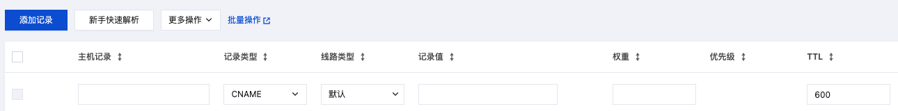3. 单击添加记录,填写以下记录信息。如下图所示: