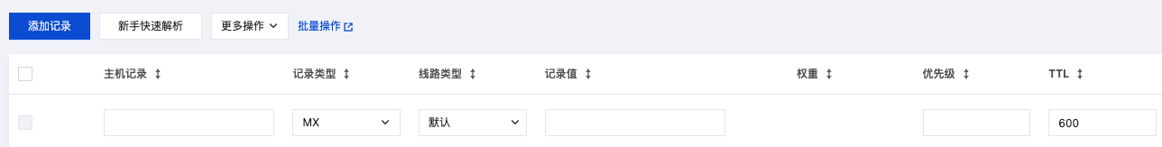 如果需要设置邮箱,让邮箱能收到邮件,就需要添加 MX 记录。本文档指导您如何添加 MX 记录。