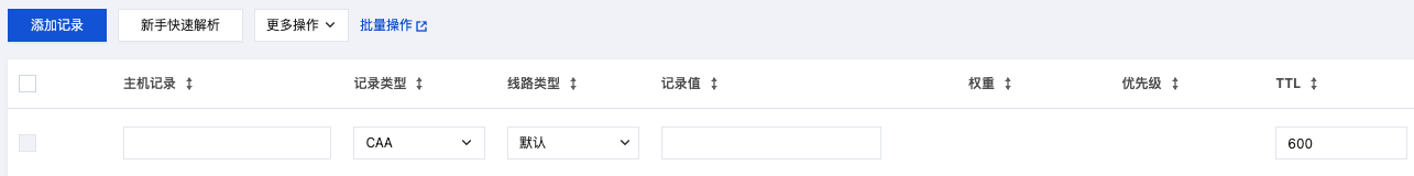 记录类型:选择 “CAA”。