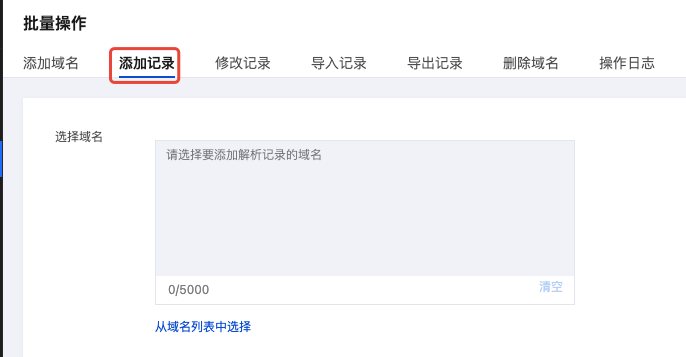 1. 在批量管理页面,选择添加记录页签,如下图所示:
