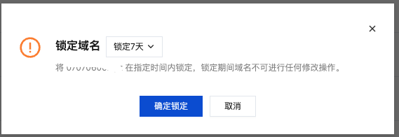 若您需要的域名需要开启锁定的功能,请确保您的域名已进行解析,否则无法开启域名锁定。添加解析操作请参见 添加域名解析。 3. 在弹出的锁定域名窗口中,设置锁定天数,单击确定锁定,完成锁定。