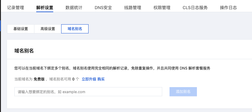 别名绑定可以使您在一个域名里管理记录完全相同的多个域名,免除您对多域名相同记录的重复操作。