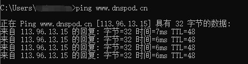1. 输入 ping + 空格 + 您的域名(这里以 www.dnspod.cn 为例)。