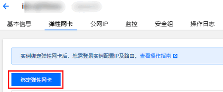 3. 选择弹性网卡标签页,单击绑定弹性网卡,新建一个与主网卡同一子网的辅助网卡。