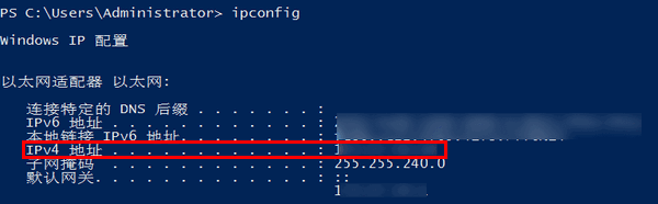5. 双击 步骤一 中下载的脚本即可执行,输入步骤三中已配置直通的 EIP 地址(可在 EIP 控制台 中进行查看),连续回车两次即可。 6. 在 “Windows PowerShell” 窗口中输入ipconfig按回车,可看到主网卡上的 IPv4 地址变成 EIP 地址。