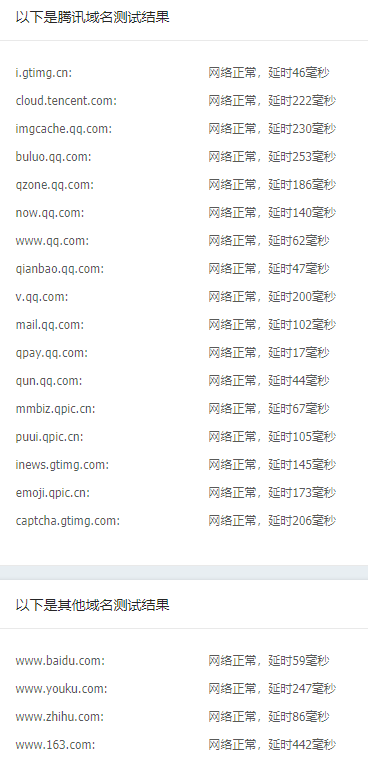 我们可从结果中获知访问各个域名的延时,以及网络是否正常。 如果不正常,请联系您的网络服务提供商进行协助定位解决。