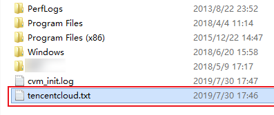 2. 在操作系统界面,打开 C:\\ 盘,查看是否存在 tencentcloud.txt 文本文件。