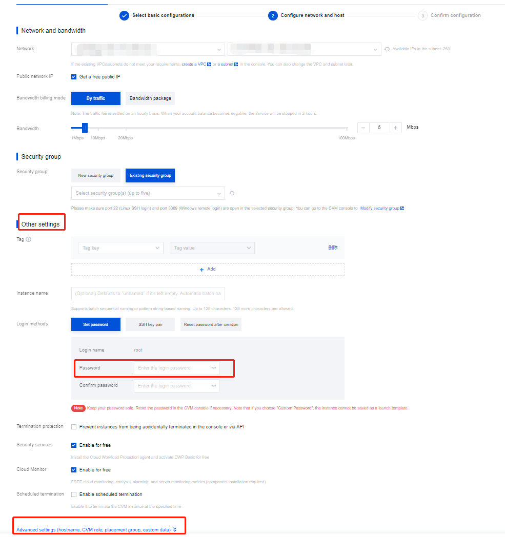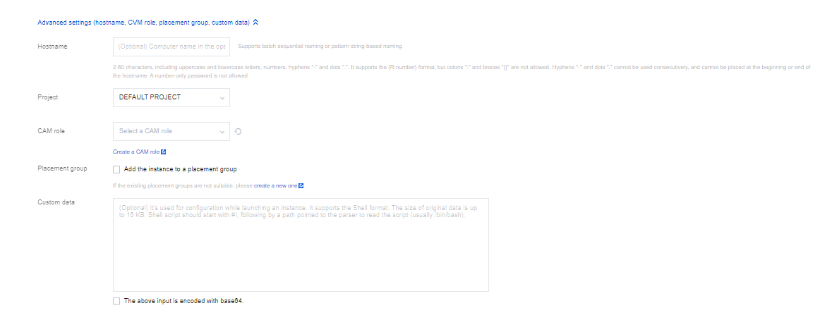 1. 参考 创建实例 购买实例,并在 2.设置网络和主机中单击其他设置中的高级设置。如下图所示: