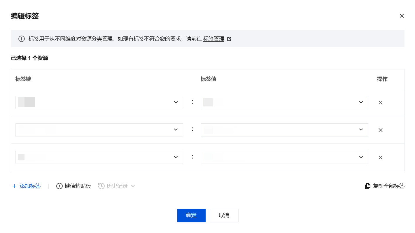 例如,为 ins-abcdef1 的实例添加 三组标签。 4. 单击确定,系统出现修改成功提示。