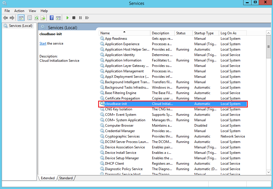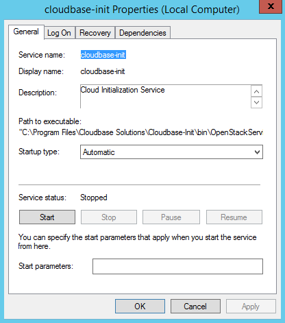 4. 双击打开 cloudbase-init 的属性。如下图所示: