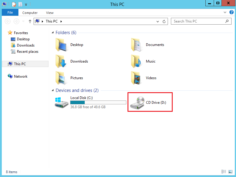 11. 在操作系统界面,单击 ,选择这台电脑,检查设备和驱动器中是否加载了 CD-驱动器。如下图所示: