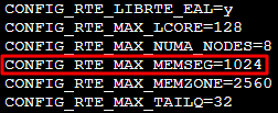 CONFIG_RTE_MAX_MEMSEG=256,将其修改为1024。修改完成后如下图所示: