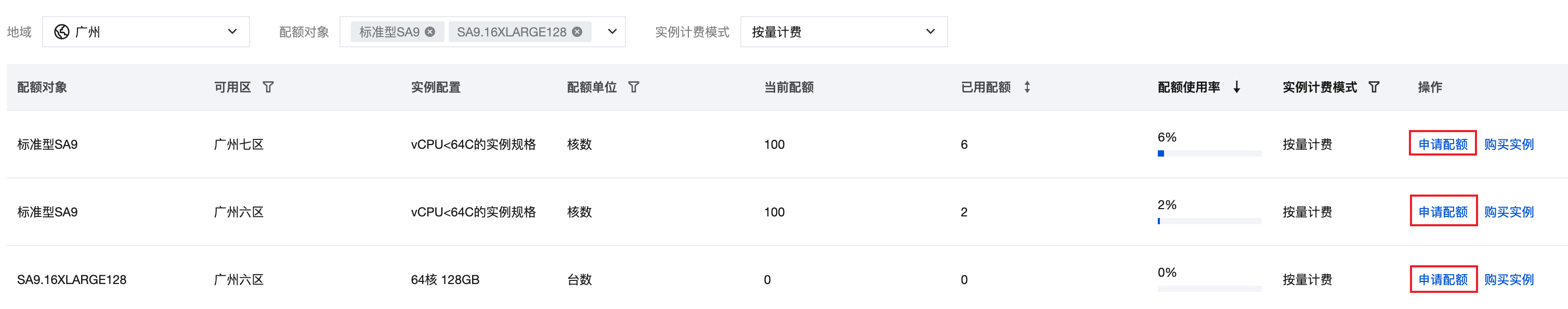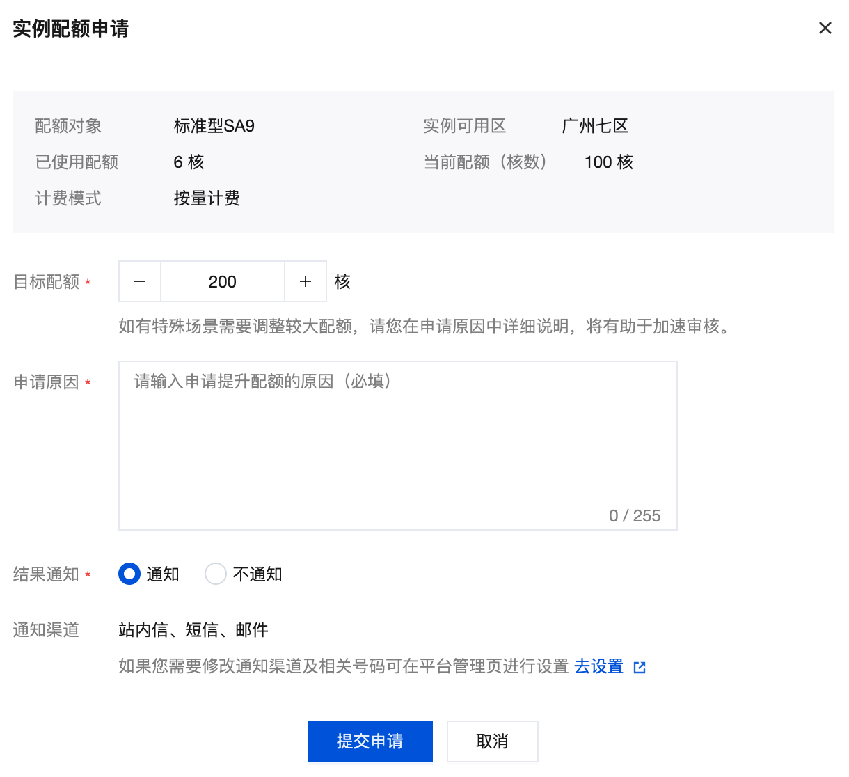 实例配额申请