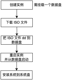 强制导入 ISO 镜像并创建实例,相当于把 ISO 通过 dd 命令写入到系统盘 vda。因为目前运行的程序就是系统盘 vda 上的安装程序,所以无法将系统装到系统盘 vda。