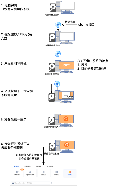 一个典型的 ISO 镜像使用步骤如下图所示: