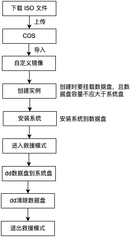 4. 等待安装完成后,建议直接在云服务器控制台将实例 关机,然后 进入救援模式。 5. 在救援模式下,通过 dd 命令将数据盘内容写入到系统盘。
