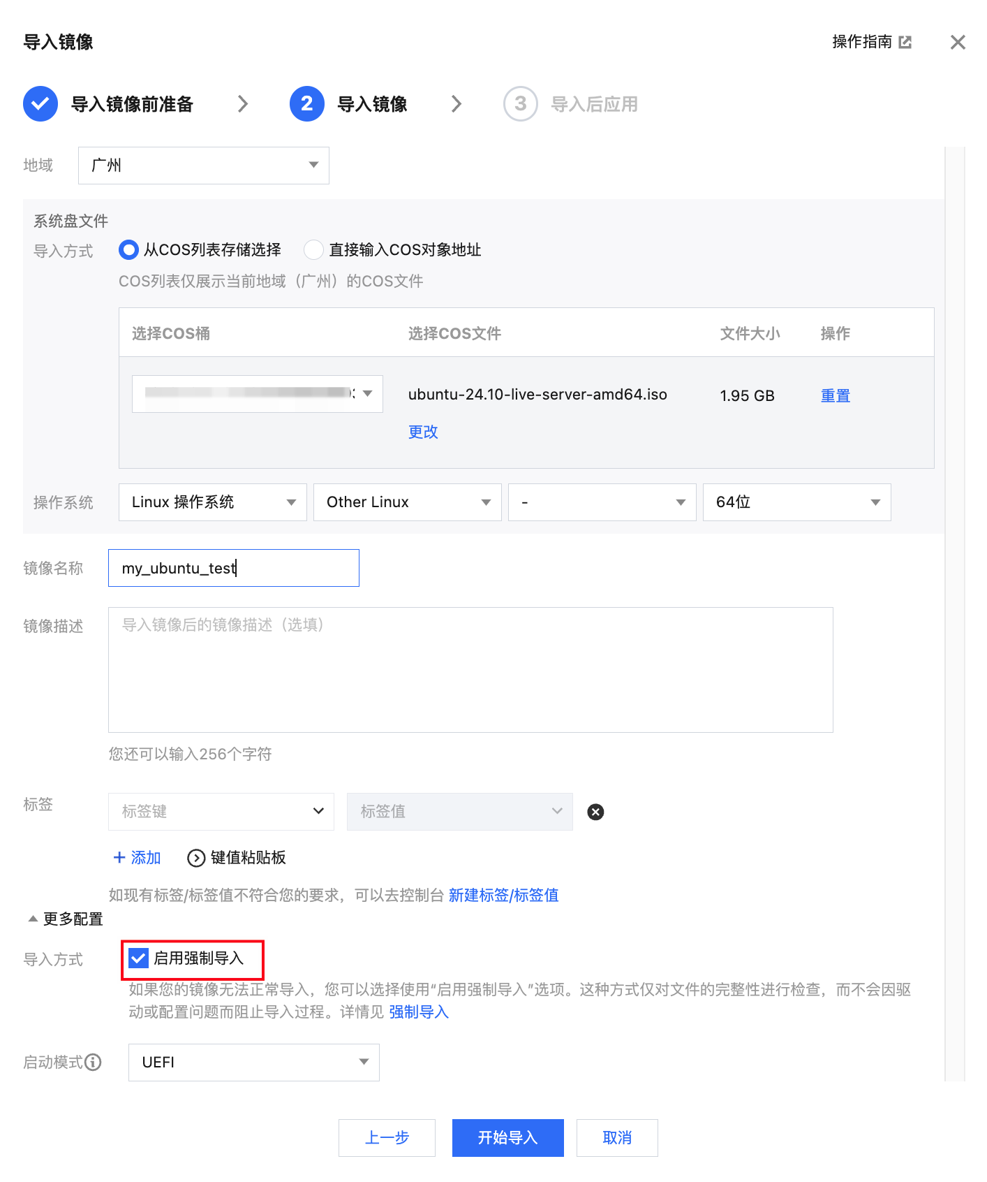 1.3 将 COS 存储桶的 ISO 镜像导入 CVM。