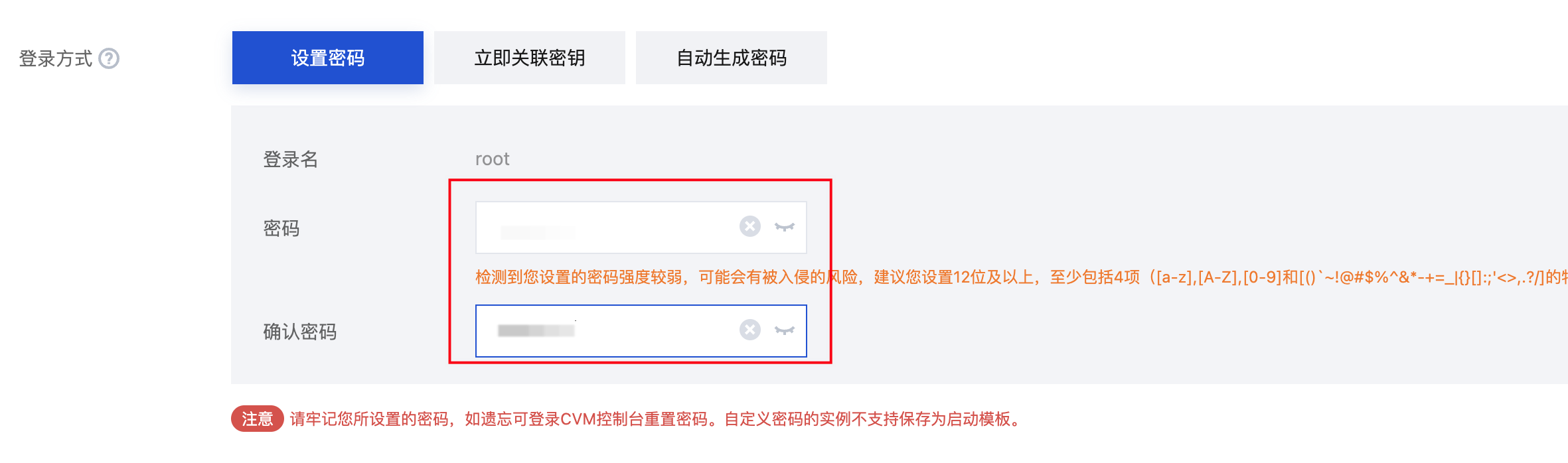 需要手动设置实例的登录密码,方便后续 VNC 登录。