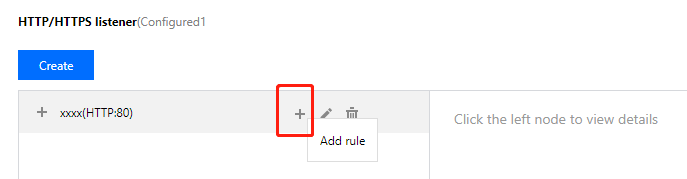 1. 在“监听器管理”页签中,选中刚才新建的监听器,单击+添加规则。