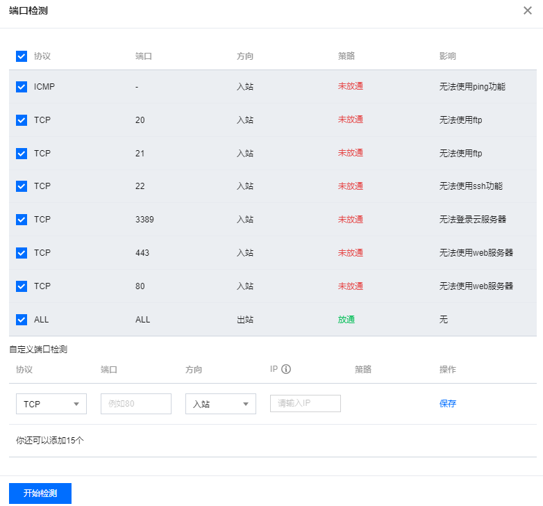 实例端口验通功能可以帮助您检测云服务器实例的安全组端口放通情况,定位故障所在,提升使用体验。