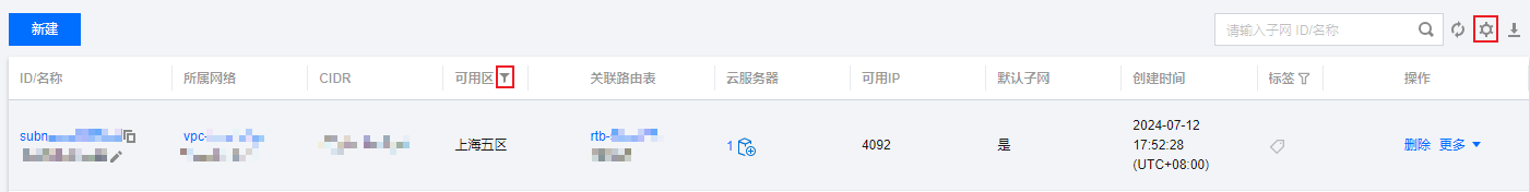 可用区:展示子网所在的可用区。